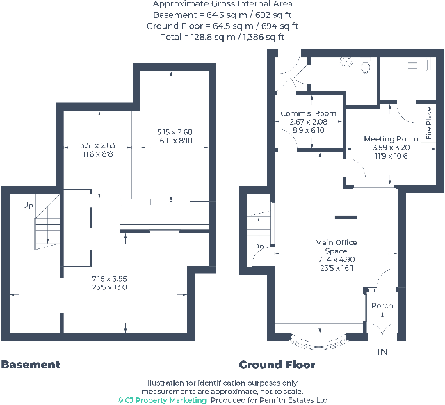 • Basement: approx. 694 sq ft (64.3 sq m)